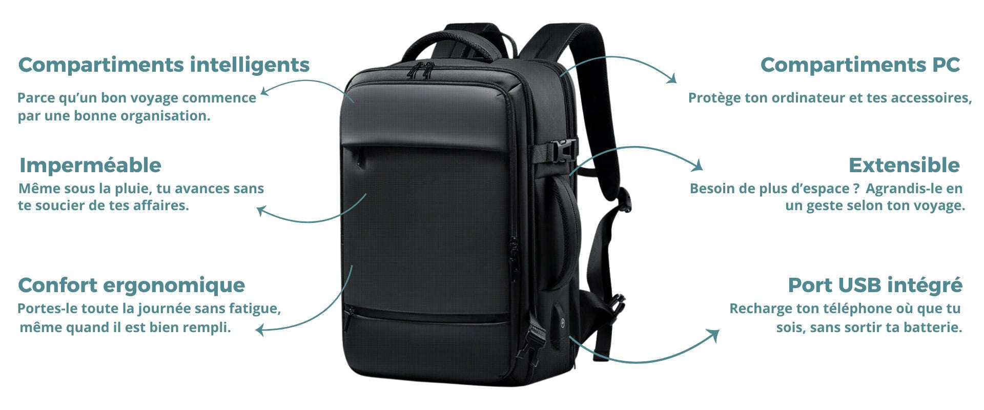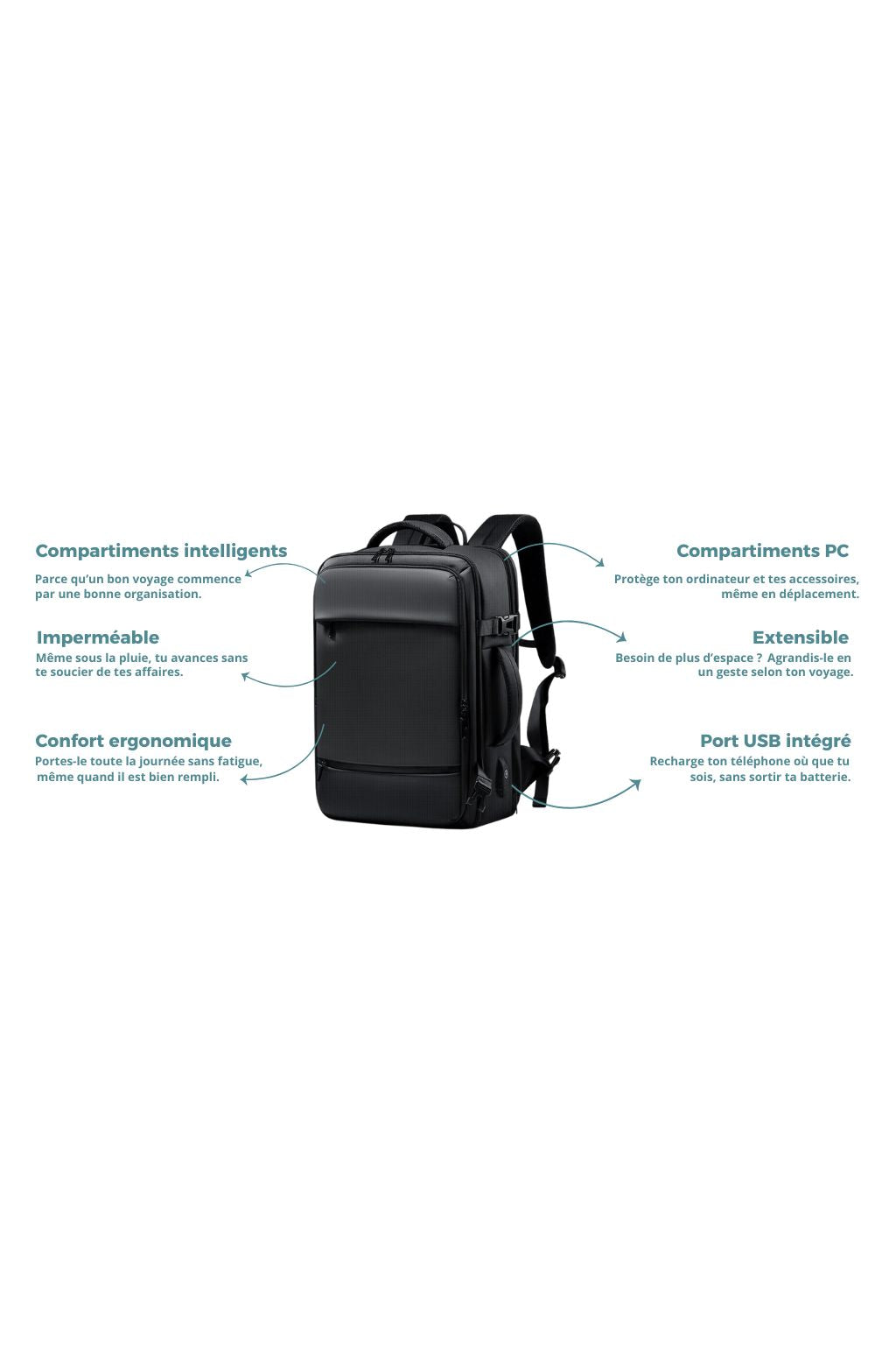 Voyagez, travaillez et explorez avec confort et sérénité grâce à son design moderne et intelligent. Imperméable et résistant, il protège vos affaires par tous les temps. Son port USB intégré vous permet de recharger vos appareils en déplacement. Le compartiment PC 17,3" garde votre matériel en sécurité, idéal pour le bureau, les études ou le voyage. Grâce à son dos respirant et ses bretelles rembourrées, profitez d’un confort optimal toute la journée. Chaque détail sert votre organisation : tout est à sa place, toujours prêt quand vous l’êtes.
